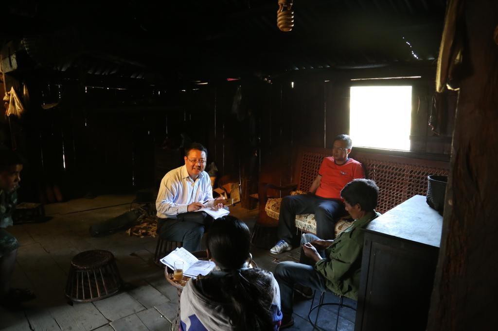 座谈会上,勐来乡党委书记尹红青和拱弄村支部书记李贵东先后介绍了乡情和村情,结合驻村干部和走访领导干部调研的初步成果,总结出拱弄村呈现的四个问题:第一,道路交通、农田水利、村庄等基础设施落后,吸引不了外来投资。例如,有的村民想建房,但建材没法运到家,还需要大量的肩扛骡驮。第二,当地居民学历低,80后群体中,大多只有初中学历,甚至还有小学学历,这就造成智力短缺,导致创富思路贫乏,无法有效实现自我投资。第三,产业发展单一,也谈不上集约化和规模化,基本处于靠山吃山的原生发展状态,已有投资效益低下。第四,人均占有的出产用地少,还不到两亩,亟需打破靠山吃山的原生发展模式。