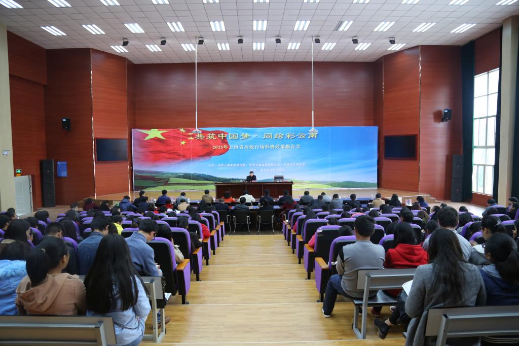 (宣传部 张汉仙) 12月30日,“共筑中国梦.同绘彩云南”2015年云南省高校百场形势政策报告会在宝威BVSports(中国)举行。中共临沧市委副书记丁仕凯,云南大学马列学院博士生导师任新民分别作“十八大以来反腐倡廉形势与任务”、“中国梦想与理想信念”专题报告。