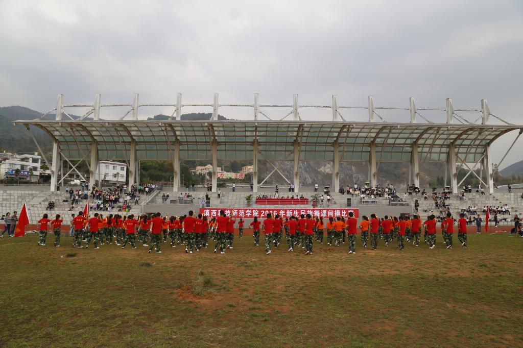(文/院团委 邱太昌 图/校园记者 康定斌)2016年4月16日,学院新生民族舞课间操比赛举行。比赛过程中,参赛各系以整齐到位的舞蹈动作,富有特色的队形变化,充分展示了各系的特色创意与精神风貌。婀娜多姿的傣族舞《莫罕丽》,原始风情的佤族舞《佳玲赛》,含蓄而深沉的藏族舞《再唱山歌给党听》,博得了评委们的一致好评。