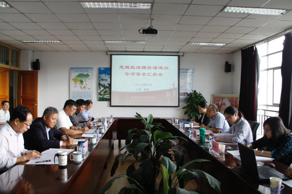 近日,由云南中医学院思政部主任、熊官旭教授带队的云南省高校工委思想政治理论课专项督查第七督查组一行莅临我校对思想政治理论课建设情况进行督查,校党委书记张中义对省委高校工委给予学校思政课建设的关心支持表示感谢,对督查组一行的莅临表示欢迎,并汇报了我校思想政治理论课建设情况,校长王德强主持督查汇报会。督查组随堂听了马克思主义学院岳宗凤老师讲授的《思想道德修养与法律基础》课,查阅近年来教学开展情况、专项经费使用情况、思想政治理论课教师培训进修情况等相关材料。督查组充分肯定了我校党政班子多年来对思想政治理论课建设的高度重视,并对我校思想政治理论课的建设给予了高度的评价。同时对以后进一步加强我校思想政治理论课建设提出了意见和建议。