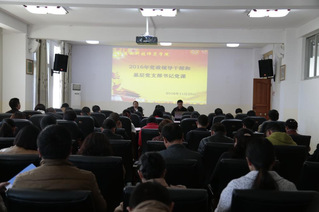 11月25日下午,学校举行2016年党政领导干部和基层党支部书记专题党课,校长、博士生导师王德强教授以“坚定理想信念,建设国门大学”为主题,从“理想信念”的释义入题,紧扣十八届六中全会精神,结合学校转型发展,分析了学校发展存在的挑战机遇,提出了殷切的工作希望。