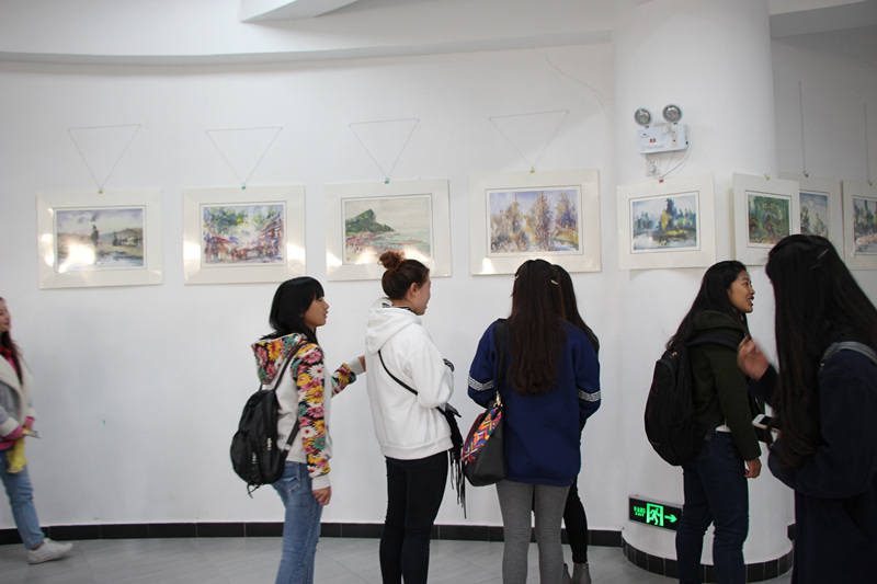 教授的水粉水彩系列展出作品,一幅幅精美的作品引来参观者的连连赞誉。