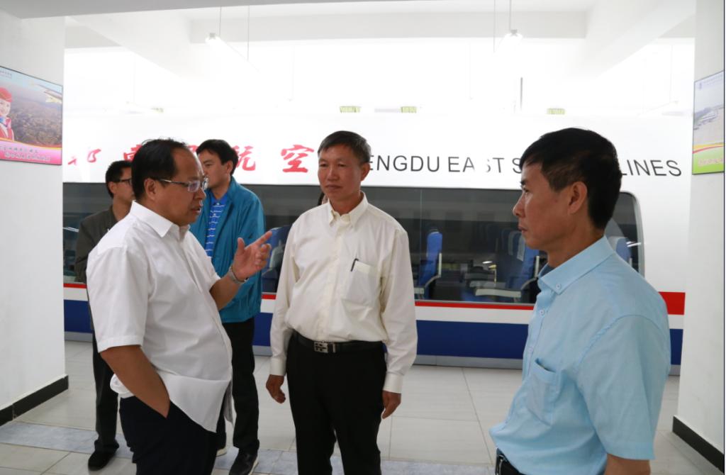 受校长王德强教授委托,董大校陪同杨新业先后参观了东南亚语种实训中心、亚洲微电影学院实训室、空乘实训室等多个校内实验实训基地。到缅甸留学生教室,与缅甸留学生亲切交流。