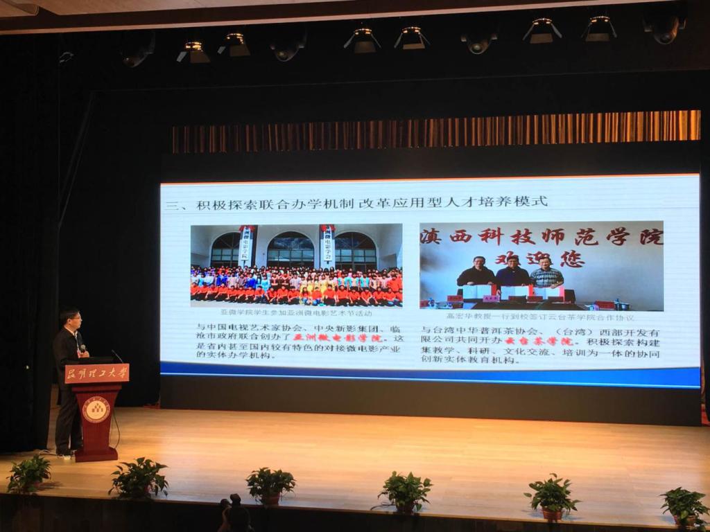 省教育厅抽取了10所有具代表性院校的校长在论坛上作交流发言。王德强代表学校作“深入实施‘三性、四群、五工程’办学思路,努力推进应用型国门大学建设”的发言,对学校办学思路、本科专业建设举措、特色亮点和建设成果等进行了全面深刻的阐述。学校继续教育学院副院长周家瑜在分论坛中作了“边境国门大学华文教育实践与探索”的主题报告。