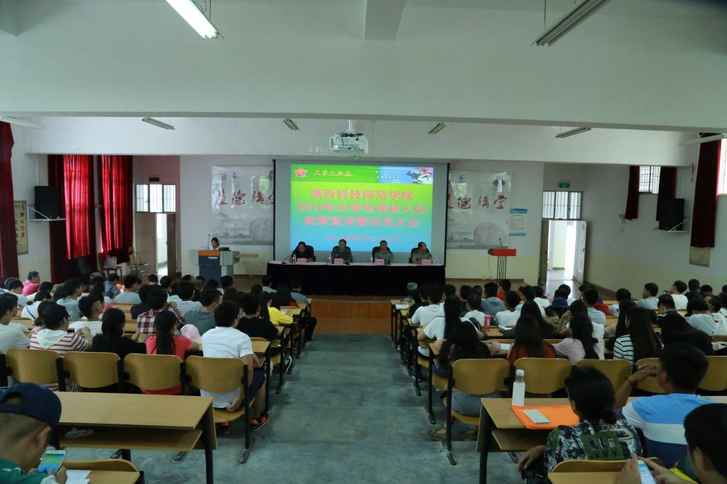 5月22日,我校举行2017年大学生征兵工作宣讲会暨征兵工作启动仪式。受校长王德强委托,董大校出席并主持宣讲会。临沧军分区政治部主任张继乾大校出席宣讲会,临翔区人武部政委王跃其作主题宣讲。