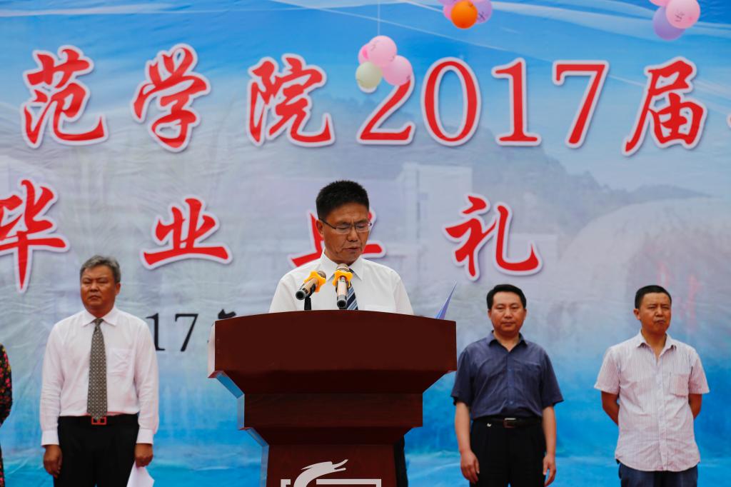 王德强指出,2017届同学恰逢学校跨越发展、转型发展、特色发展的关键时期,你们是学校跨越发展、转型发展、特色发展的重要参与者,你们既分享了学校跨越发展、转型发展、特色发展的成功与喜悦,也和全校师生一道经历了学校跨越发展、转型发展、特色发展过程中的艰辛。艰难困苦玉汝于成!你们不仅顺利完成了学业,也练就了良好的意志和品格。这是你们走向社会,走向成功最重要的资本。母校为你们骄傲。