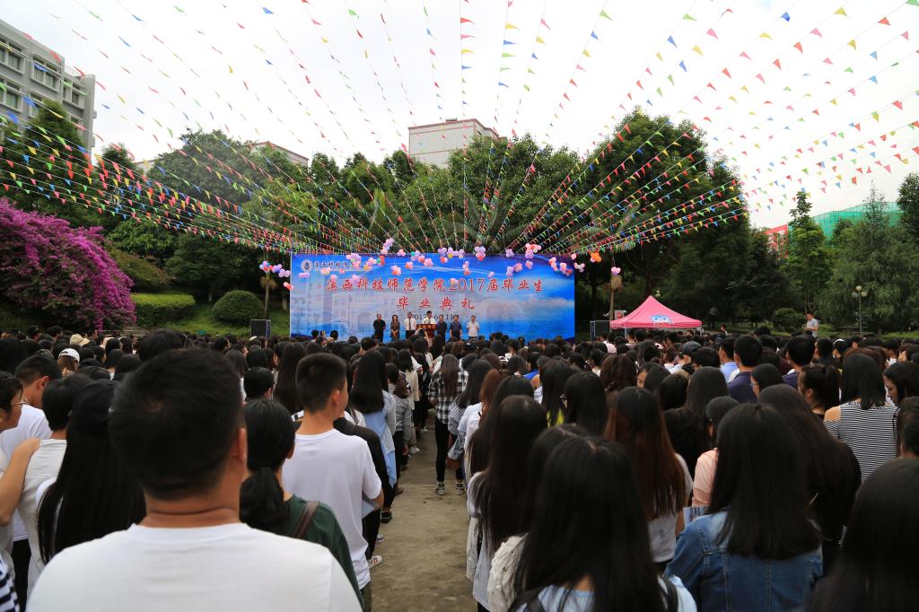 学校首席教授彭文斌,各部门主要负责人、师生代表、毕业生家长代表及2017届毕业生2300多人参加典礼。