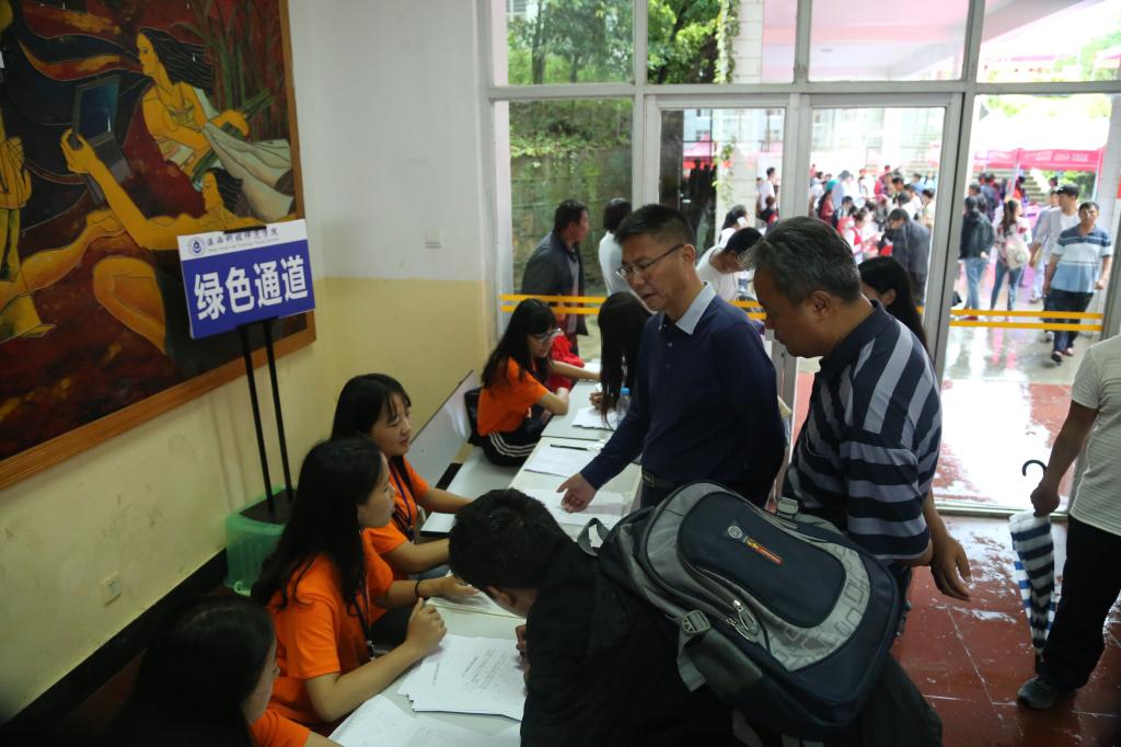 在这个特别的日子,2017级新生如期到校报到。虽然天公不作美,不时小雨霏霏,新生的冷暖牵动着校长的心。8月26日,校党委副书记、校长、博士生导师王德强教授分别到各个学院的新生报到处、绿色通道、财务处等地,询问新生报到的进展情况,深入学生宿舍走访探望新生。