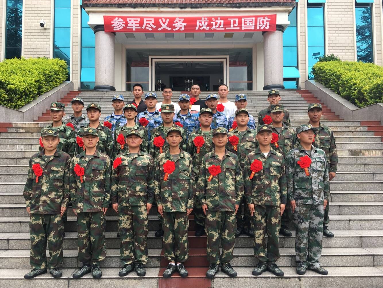 伴随着嘹亮的军歌声,学校领导为即将奔赴军营的大学生新兵们佩戴上鲜红的光荣花,对光荣入伍的优秀大学生表示热烈的祝贺,向关心和支持国防建设的新兵家长们致以崇高的敬意,并希望全体新兵同志牢记习主席听党指挥、能打胜仗、作风优良的殷切嘱托,担起强军兴军的历史重任,发扬吃苦耐劳的精神,锻造过硬的军事本领,永争第一,早传喜报,为军旗添彩,为母校争光。