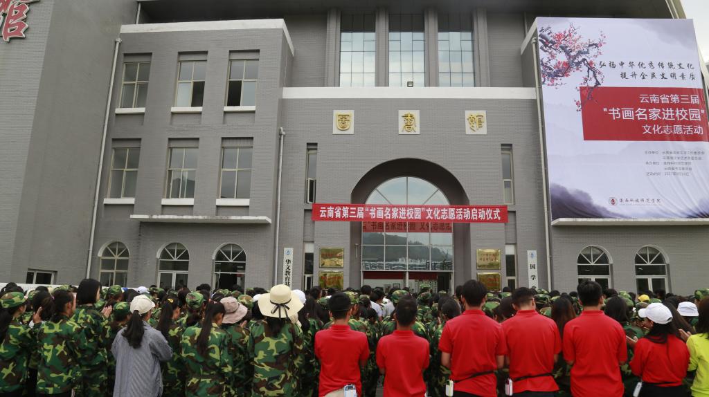 9月16日,云南省第三届“书画名家进校园”文化志愿活动启动仪式在我校举行。云南省教育厅副厅长郑毅出席启动仪式并讲话。我校党委书记张中义出席启动仪式并致欢迎词。
