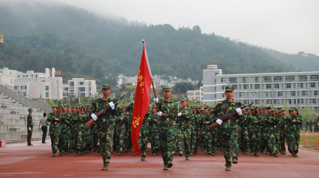 临沧军分区、临翔区人武部、学校有关负责同志,及军训教官、2017级全体新生等3000余人参加结训典礼。