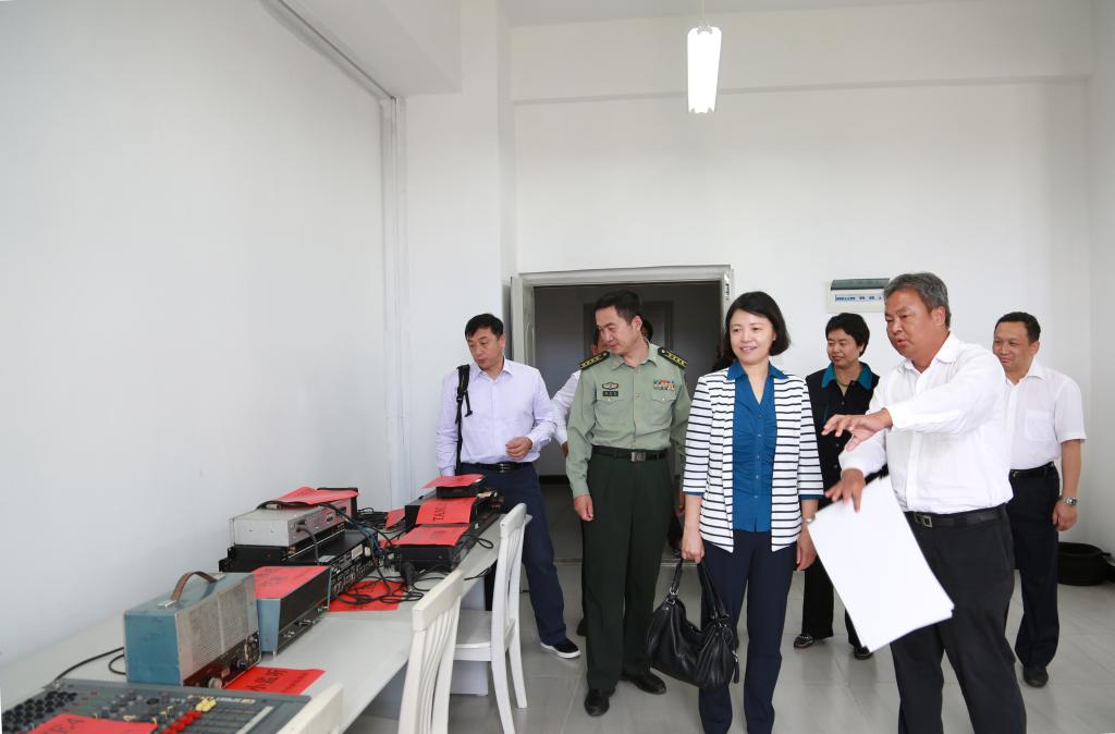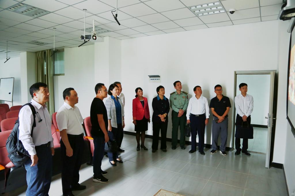 田立新、胡汴民一行先后参观了特殊教育实训室、学前教育实训室、亚洲微电影学院实训室。段佳美详细介绍了学校“三性四群五工程”的办学定位与发展思路和学校跨越发展、转型发展、特色发展以及学校语言文字工作的基本情况。