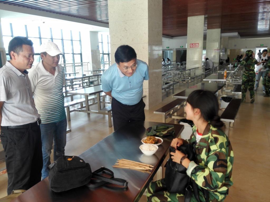 张中义与用餐同学亲切交谈,向新生了解“从哪里来,能不能习惯这里的环境,菜的味道如何,价格合不合理。”