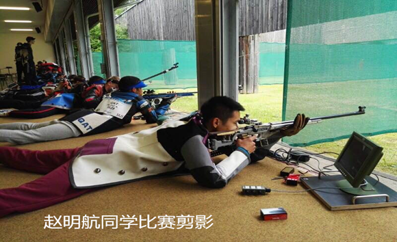 赵明航同学自2017年1月至9月在国内射击比赛中获8枚金牌、1枚银牌的好成绩。