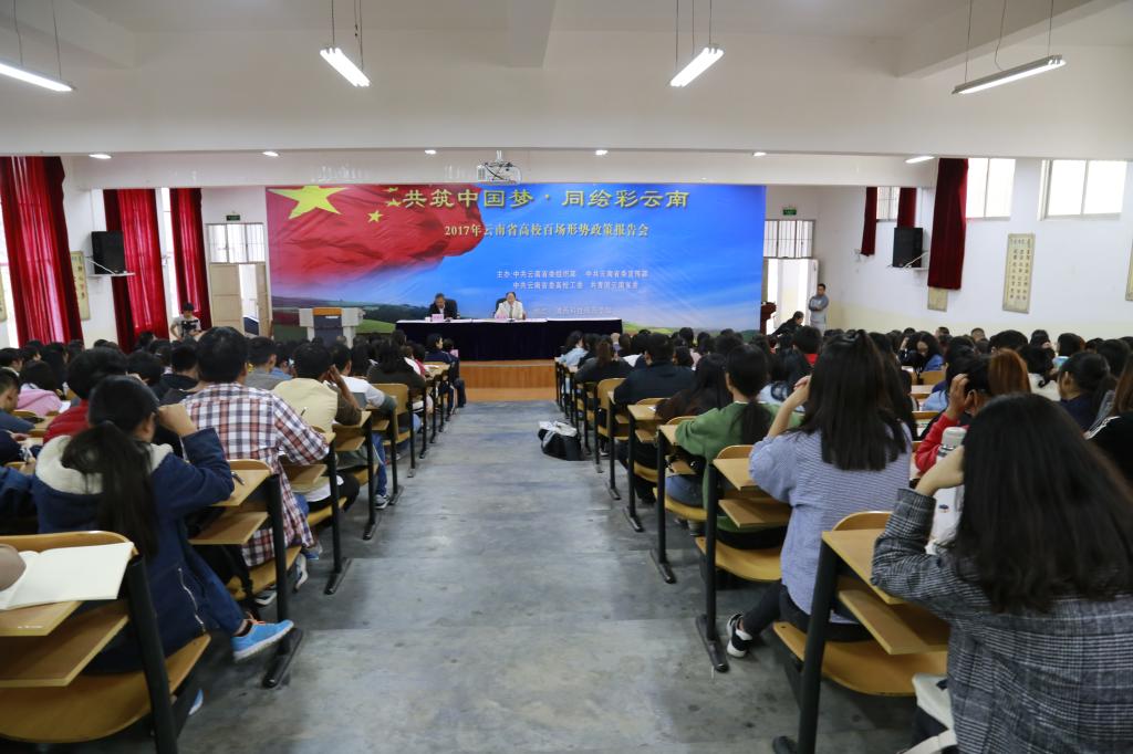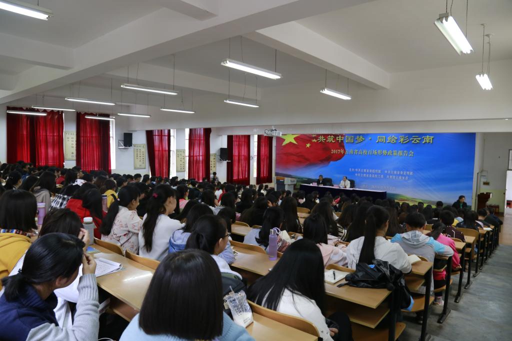 为认真落实《省委组织部省委宣传部省委高校工委团省委“共筑中国梦·同绘彩云南”2017年云南省高校百场形势政策报告会工作方案》要求,加强我校形势政策教育,11月3日,我校邀请省委高校工委“共筑中国梦·同绘彩云南”百场形势政策报告宣讲专家骆小所教授,到校为广大师生作形势政策报告,校党委委员、副校长段佳美主持报告会。