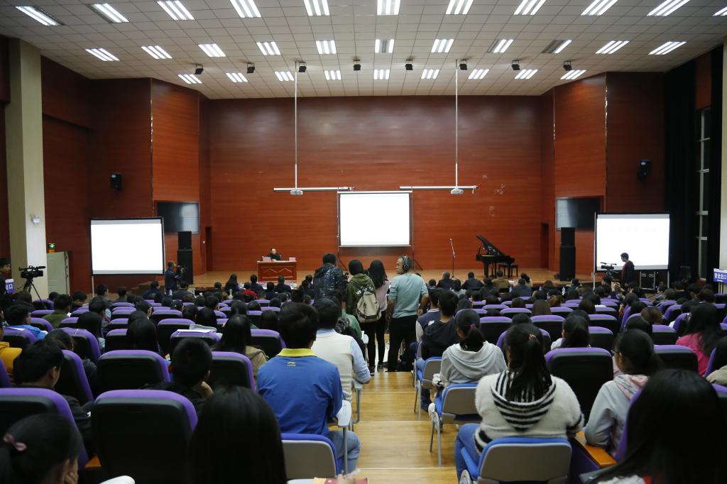 市领导余长火、牟洪操,我校领导王德强、段佳美、董大校、黄城书,副处级以上干部,师生代表共320余人参加报告会。