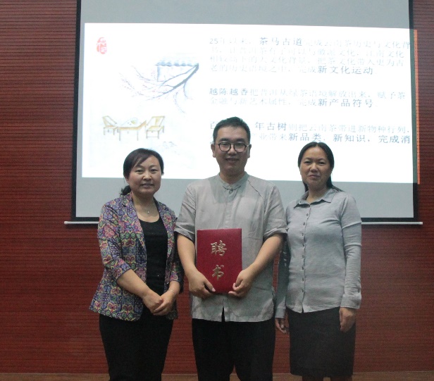 5月11日,云南大学茶马古道文化研究中心周重林研究员受邀在同声传译室为师生们进行了一场别开生面的茶文化讲座,并受聘为学校客座教授,生物技术与工程学院全体师生400余人聆听了讲座。