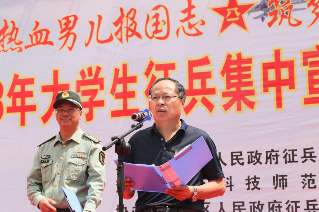 李宁明作动员讲话,鼓励新时代优秀青年响应国家号召,携笔从戎、参军入伍、保家卫国,在军营广阔的舞台上彰显人生价值。