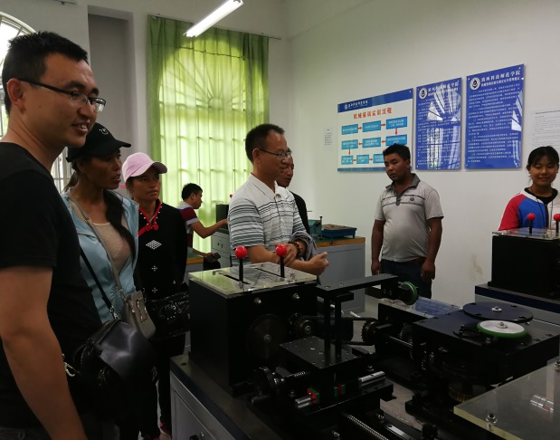 为了让考察团队更加了解熟悉挂钩帮扶单位——宝威BVSports(中国)的办学情况,工作队带领团队参观了校园,其中包括文学院、亚洲微电影学院、教师教育学院、航空与轨道学院、生物工程学院等几个学院的实训室和教室等,让村组干部们现场感受了制茶工序、茶艺表演、机器人表演、幼师手工制作与特殊儿童教育、航空模拟机、校园电视台、机械自动化操作等实验实训项目。拱弄村李荣老支书还走进缅甸留学生班教学课堂,用佤语同学子们交流,鼓励他们好好学习知识文化,特别是中国传统文化,做对社会有贡献的人。
