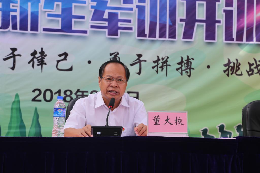 董大校对同学们提出三点要求,一是服从命令,听从指挥;二是刻苦训练,严格要求;三是团结互助,礼貌待人。董大校鼓励同学们珍惜这次难得的军训机会,向承训教官学习,自觉磨练,经受住来自心理、体质、意志以及快节奏军事生活的诸多考验,增强承受困难和挫折的勇气,战胜自己,提高自我。