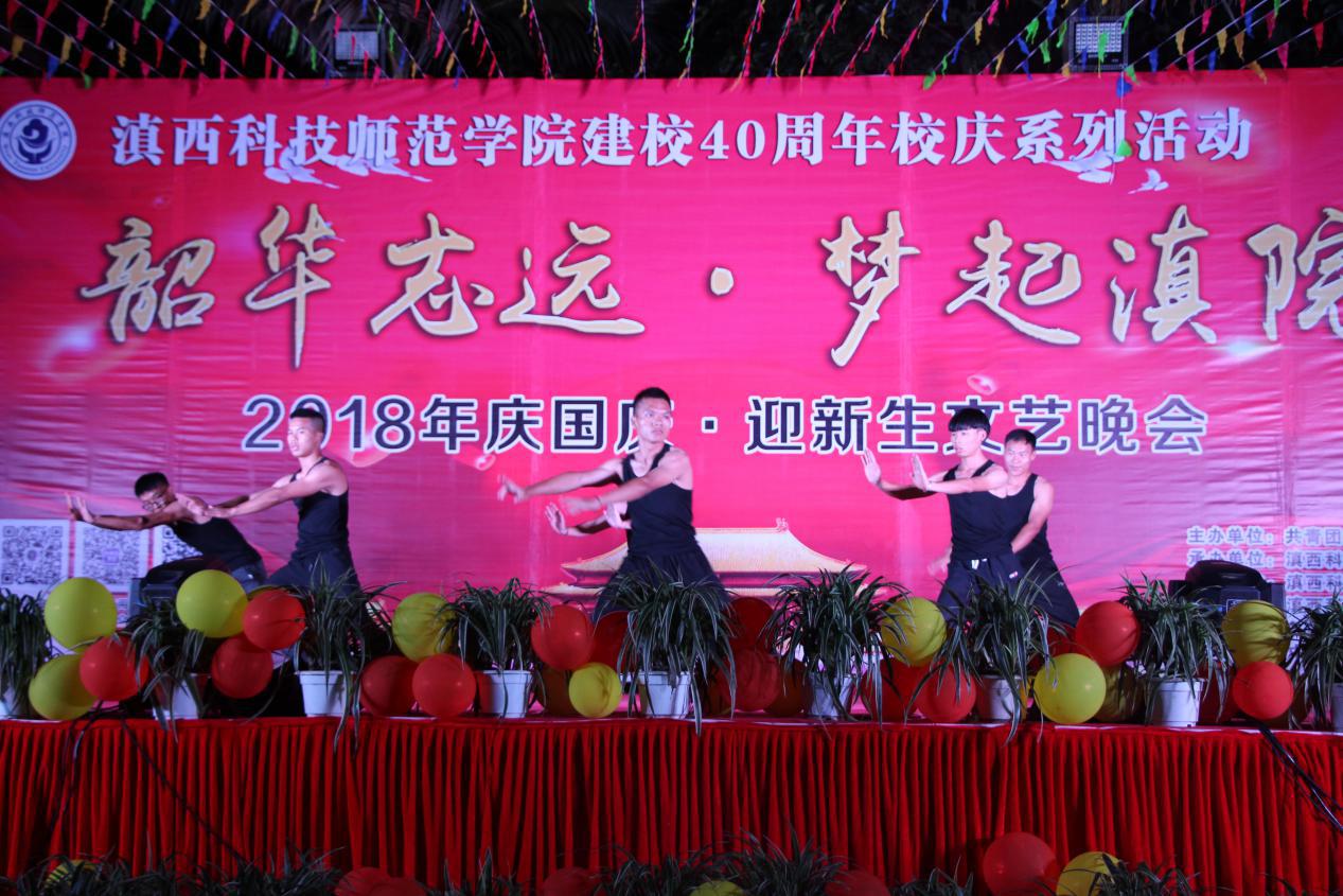 晚会在充满青春活力的啦啦操《bang bang》中拉开序幕,演出内容丰富多彩,形式灵活多样。慷慨激昂的朗诵作品《不忘初心跟党走,喜迎校庆同欢乐》表达滇西学院的学子对祖国浓浓爱意和对学校深深的祝福;舞蹈《激情加林赛》充分展现出临沧佤族独特韵味的民族风情;苗族舞蹈表演《一抹红》让人对这一颇具神秘色彩的民族充满向往;武术表演《Dance Kung Fu》带来浓浓中国味,表演者精湛演技不仅让现场沸腾还让现场观众对中国功夫有了更深的理解;传承百年的国粹京剧《天女散花》不知诉说多少情思;爵士舞《get the party》嗨翻全场。