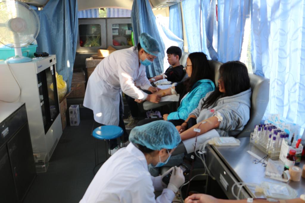 活动现场,踊跃参与无偿献血的同学比比皆是,他们围绕在献血车前,填写个人资料,进行指尖采血检测,有序等待抽血,其中有许多同学已经是多次参加学校组织开展的无偿献血活动,有些则是第一次。2018级新生中,有一个第一次参与无偿献血的女生,她平时非常惧怕打针,全程闭着眼捐献出了自己的200毫升血液。当同行的同学问她怕不怕时,她说:“比起自己的恐惧,能为需要的人提供帮助,献出自己的一点爱心,我感到自豪。”其他同学们听到她的话,深受鼓舞,纷纷挽起衣袖,躺在采血椅上,献出自己的青春热血。