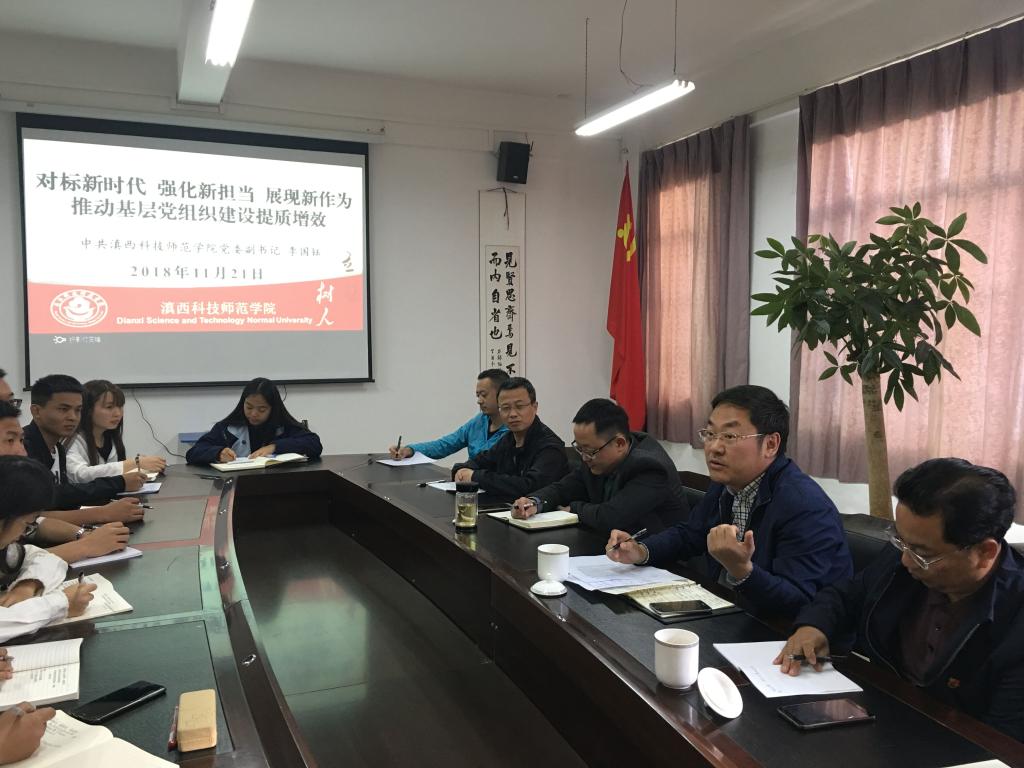 11月21日,校党委副书记李国钰到政法与公共管理学院上党课。以“对标新时代 强化新当担 展现新作为,推动基层党组织建设提质增效”为题目,从统一思想、凝聚共识、提高基层党建工作的政治站位;强化措施、狠抓落实,担好基层党建工作的政治责任;提升素养、磨砺本领,打造一支政治过硬、本领高强的基层党务工作者队伍三个方面作了讲解。