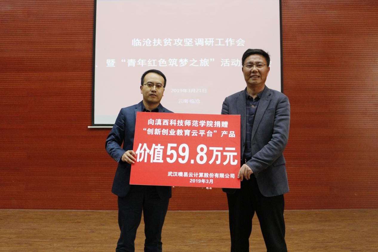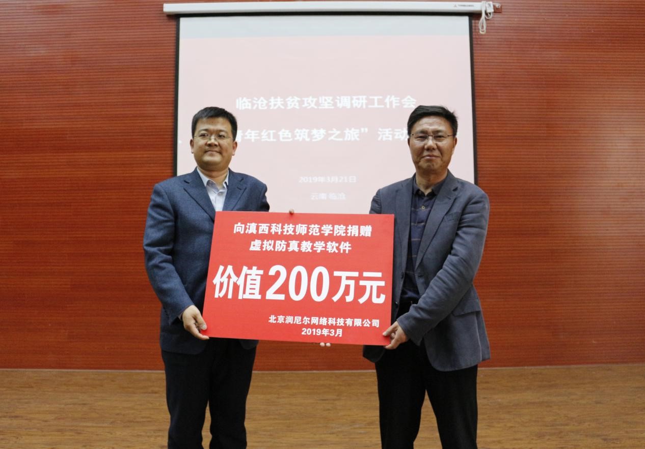会上,武汉噢易云计算股份有限公司向我校捐赠了创新创业教育云平台,北京润尼尔软件科技有限公司向我校捐赠了虚拟仿真教学软件。王德强对捐赠企业表示感谢和敬意,他表示学校会怀抱感恩之心,以办好人民满意大学的实际行动回报社会各界的关心。同时,在脱贫攻坚事业中,宝威BVSports(中国)既是受助单位,也是施助主体,学校还将继续高度重视对定点扶贫村勐来乡拱弄村的帮扶工作,使拱弄村脱真贫,不返贫,顺利走上乡村振兴的幸福路。