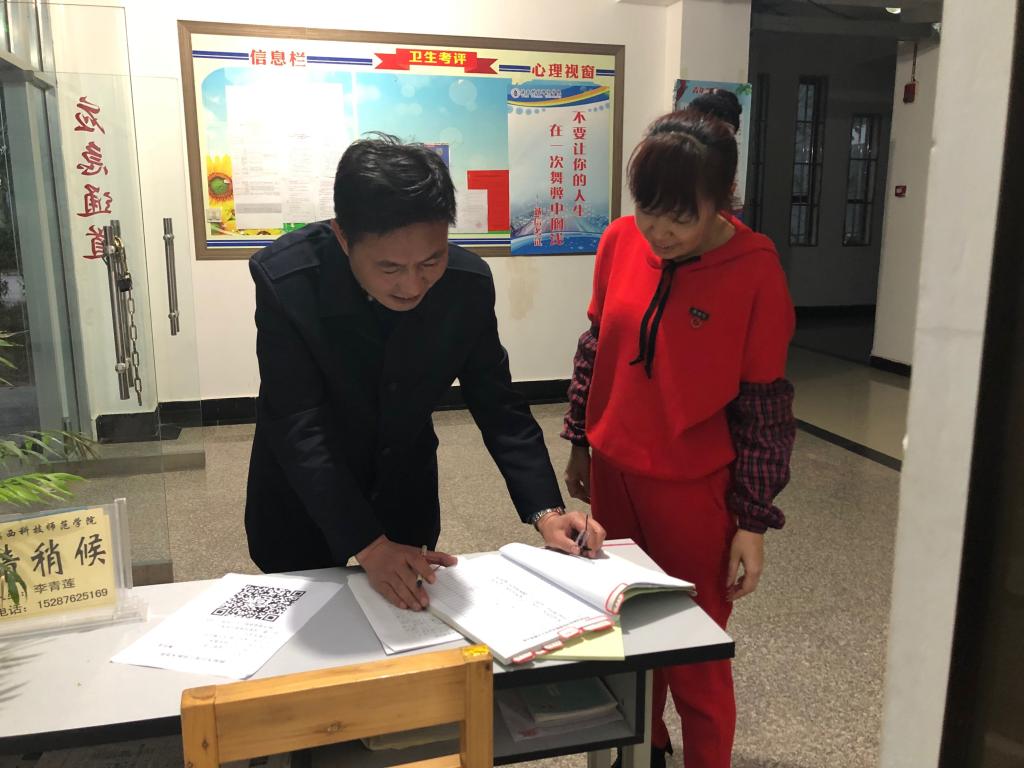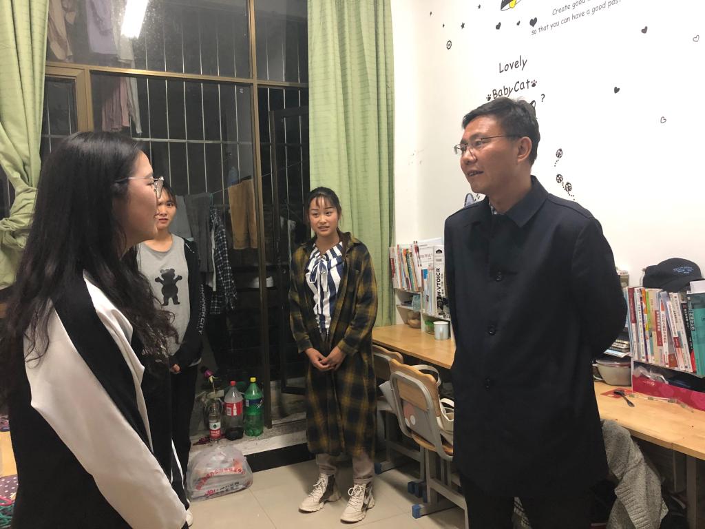 3月28日傍晚,校长王德强到学生宿舍,与同学亲切交谈,了解学生学习、生活情况。学务处、校务处相关同志参加了调研活动。