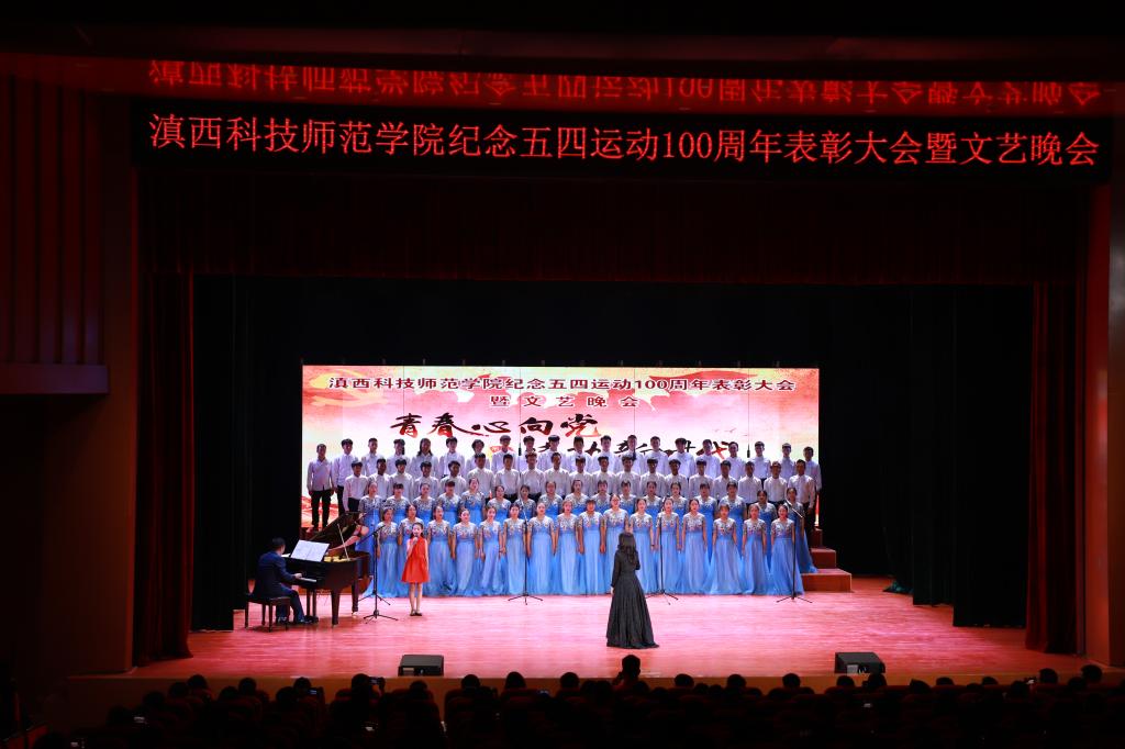 表彰大会结束后,与会领导与全校团员青年一起观看了“青春心向党 · 建功新时代”纪念五四运动100周年文艺晚会,晚会在全场高唱《光荣啊,中国共青团》歌声中落下帷幕。