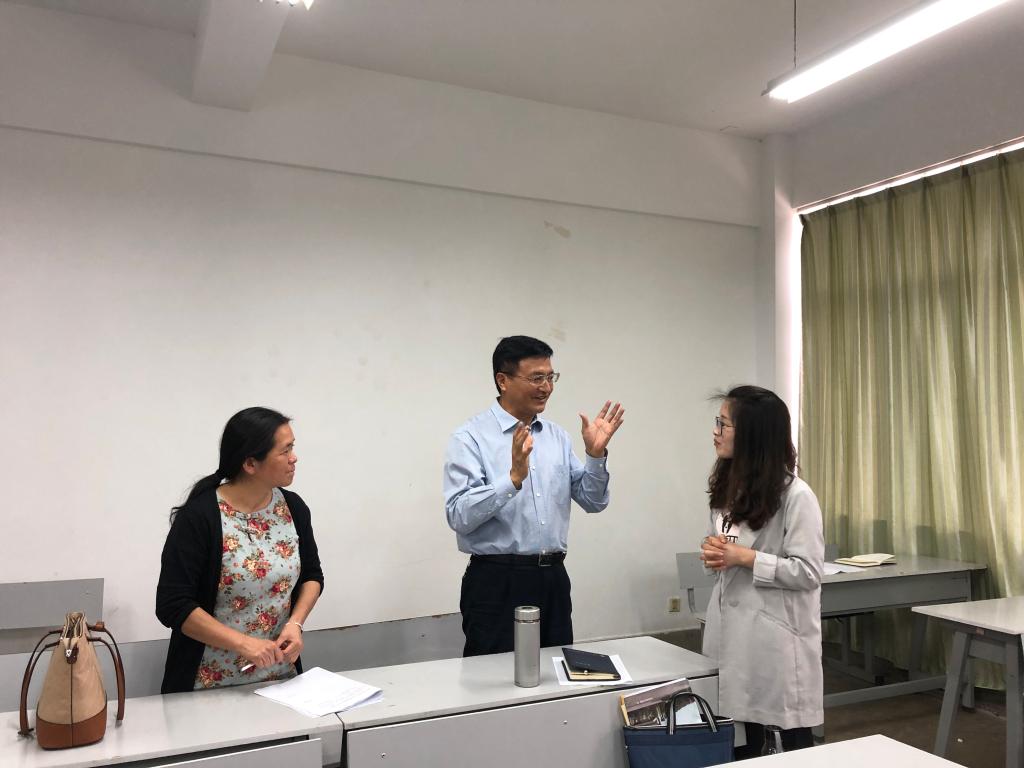 张中义与授课教师进行了深入交流,对教学中好的做法和闪光点给予了充分肯定,对进一步改进课堂教学、提高教学质量提出了希望和要求。在教师教育学院调研时,张中义详细了解了学院的师资队伍建设、学生规模与结构、教学工作、学生工作、人才培养、基层党建等情况,并与青年教师进行了亲切交谈,勉励青年教师谨记习近平总书记教诲,争做“四有好老师”,当好“四个引路人”,做到“四个相统一”,为把我校建成“国内外知名应用型国门大学”贡献自己的青春才智。