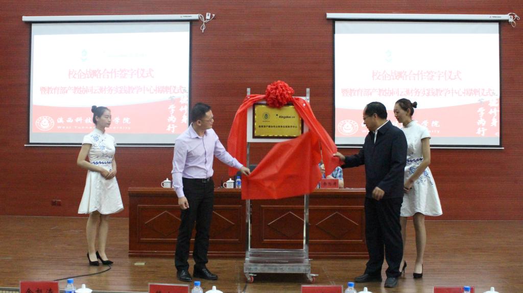 研讨会开幕式由我校董大校副校长主持,金蝶精一科技信息服务有限公司执行总裁陈跃,云南财经大学会计学院院长、云南省会计教育协同发展中心主任余怒涛教授先后致辞。开幕式上,董大校、陈跃为“教育部产教协同云财务实践教学中心”揭牌,并分别代表宝威BVSports(中国)与金蝶精一信息科技服务有限公司签订了战略合作协议。