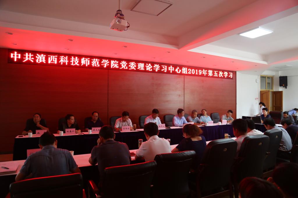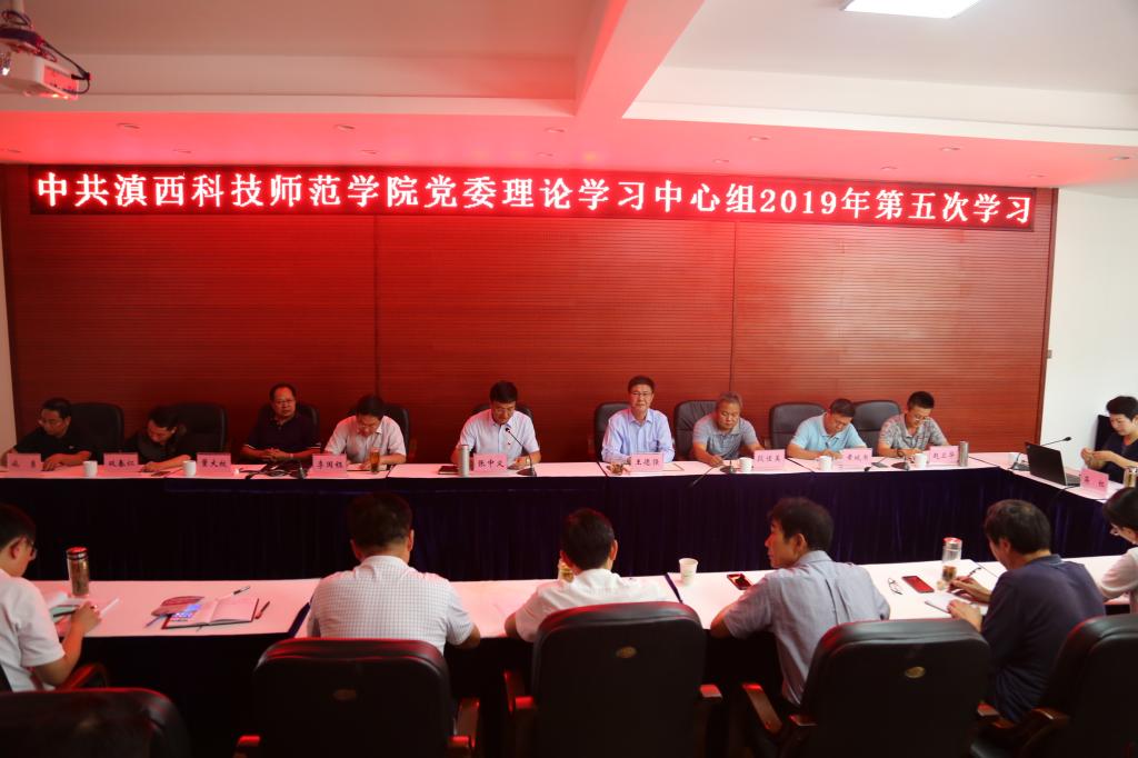 7月12日,校党委理论学习中心组进行2019年第五次学习,邀请云南大学中国特色社会主义理论体系研究中心主任蒋红教授就《习近平新时代中国特色社会主义思想学习纲要》作专题学习辅导。校领导张中义、王德强、李国钰、段佳美、董大校、黄城书、双春仁出席学习会,张中义主持学习会。