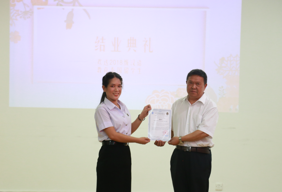 结业典礼上,泰国学生代表作了发言,表达了对学校、老师以及中国朋友的感谢和美好祝愿。