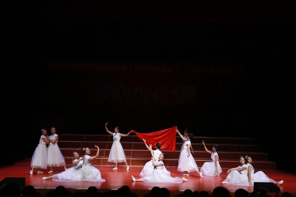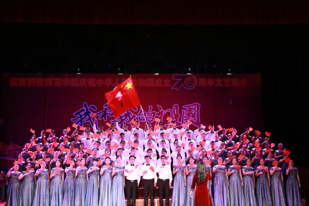 晚会在学生合唱团气势恢宏、激情昂扬的《歌唱祖国》歌声中落下帷幕,近千名师生观众手持五星红旗,全体起立大声合唱,现场一面面五星红旗汇聚成一片红色的海洋,场面壮观热烈。