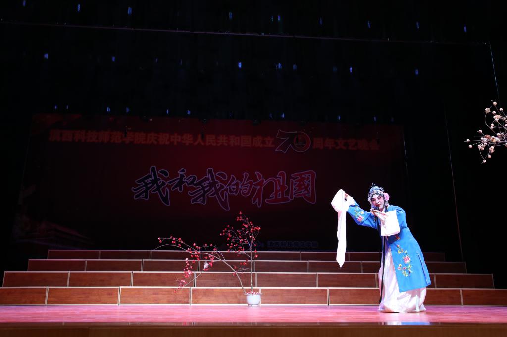 晚会在教师合唱团《我和我的祖国》温情演唱中拉开帷幕,整场晚会节目精彩纷呈,师生们通过舞蹈、朗诵、戏曲、武术等节目表演为时代欢歌,为梦想点赞,为新中国成立70周年献礼。一首首脍炙人口的赞歌,唱出炽热的爱国之情,唱响盛世中华的时代强音;一支支优美的舞蹈,舞出国之安乐,民之和睦;一篇篇激昂的诗颂,诵出拳拳爱国心,读出深深爱国情。