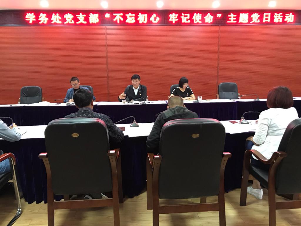 10月11日,学务处党支部开展“不忘初心 牢记使命”主题党日活动,此次活动的主题是:学习党史、新中国史,进一步坚定理想信念,传承红色基因,弘扬爱国主义精神。会议集体学习了习近平总书记在庆祝中华人民共和国成立70周年大会上的讲话,并就党史、新中国史给党员同志作专题辅导,各位党员同志还结合个人和工作实际,围绕党史和新中国史作心得体会交流。
