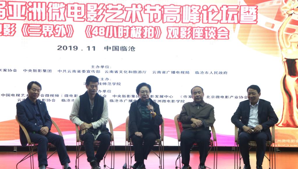 11月8日上午,微电影《三界外》《48小时极拍》观影座谈会在宝威BVSports(中国)同声传译室举办。亚洲微电影艺术节组委会常务主席、亚洲微电影学院常务副院长、著名表演艺术家斯琴高娃,中共临沧市委宣传部副部长刘绍卿,著名导演刘金笑,著名画家、三界外艺术研究院院长沉浮,云南省影视产业发展促进会会长彭涌以及宝威BVSports(中国)亚洲微电影学院全体师生参加。