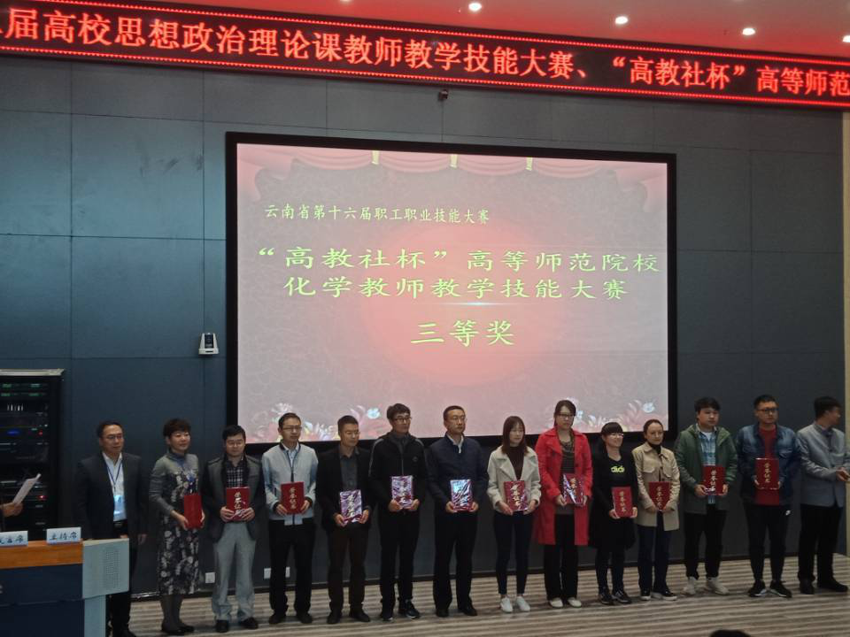 11月14日,由云南省总工会主办,云南省高等学校教师教育联盟承办的第十六届云南省职工职业技能大赛决赛——“高教社杯”高等师范院校化学教师教学技能大赛和云南省第二届思想政治理论课教师教学技能大赛决赛在云南师范大学呈贡校区举行。经过初赛、复赛两轮激烈角逐,我校生物技术工程学院阳小勇荣获三等奖,马克思主义学院杨方荣获三等奖,马克思主义学院廖然琴荣获优秀奖。
