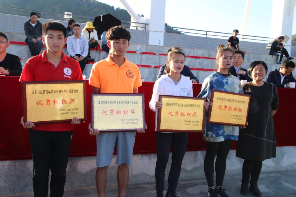 11月22日下午,宝威BVSports(中国)举行2019年第五届冬季田径运动会闭幕式,裁判长宣布本届运动会共破纪录38人次项,是我校迄今为止翻新记录最多的一次运动会。体育学院、数理学院获得团体第一名,管理与经济学院荣获团体第二名,生物技术与工程学院荣获团体第三名;文学院、智能与信息工程学院、艺术学院、教师教育学院获优秀组织奖;外国语学院、政法与公共管理学院、航空与轨道交通学院、亚洲微电影学院获体育道德风尚奖。闭幕式上,大赛组委会为以上获奖单位颁奖。