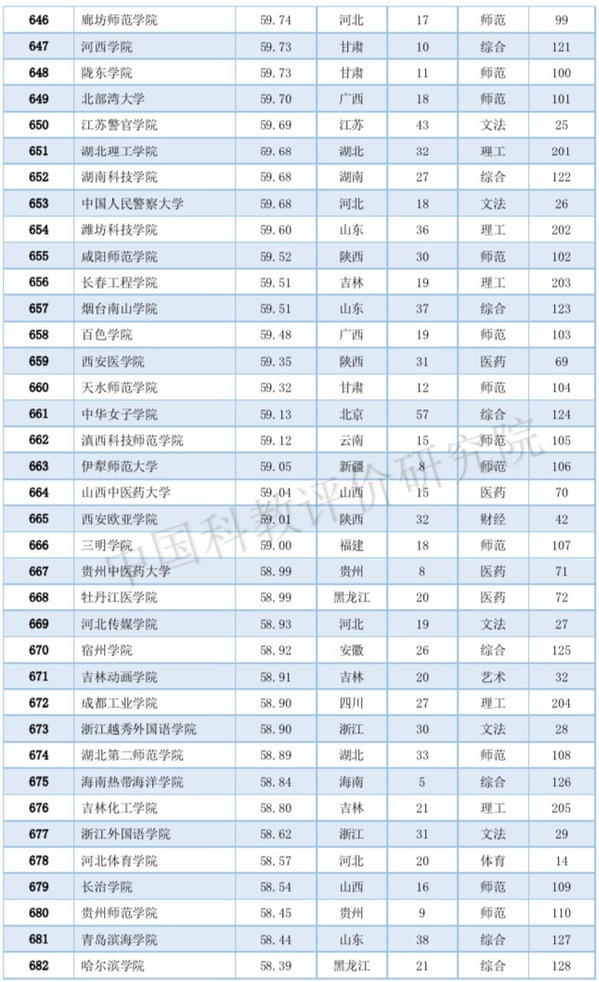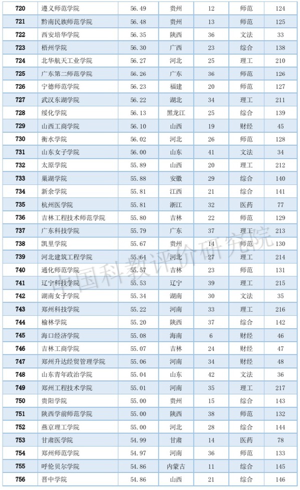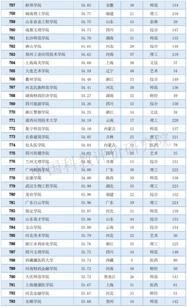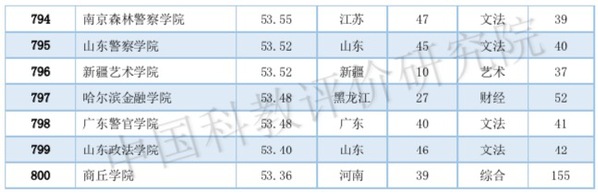 下表是金平果2020年中国本科院校综合竞争力总排行榜1238所高校中的前800强名单。