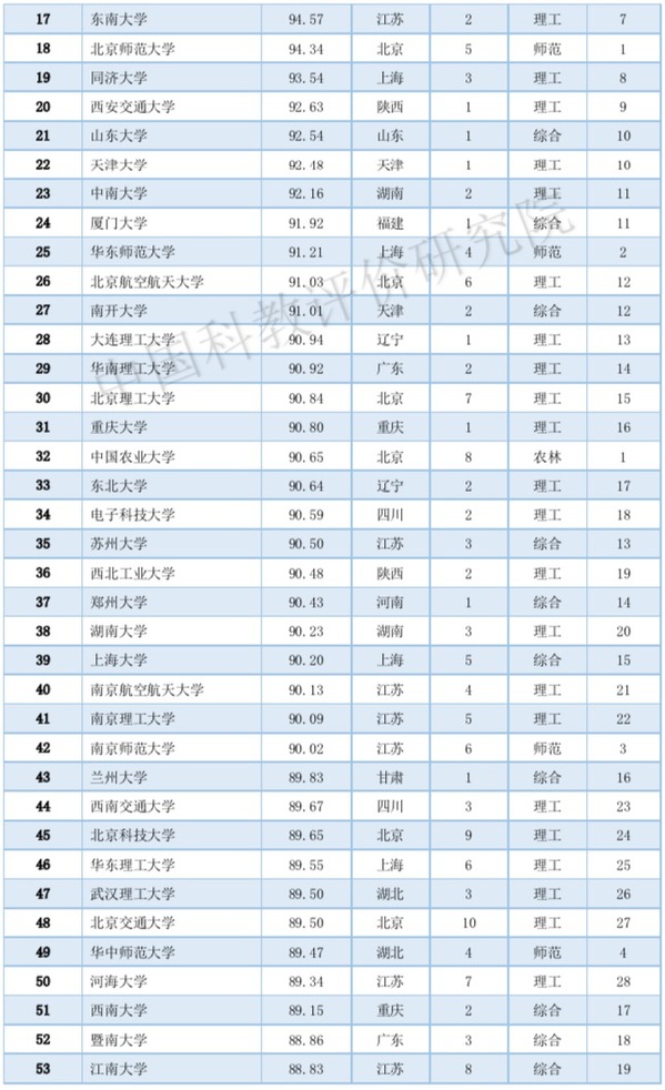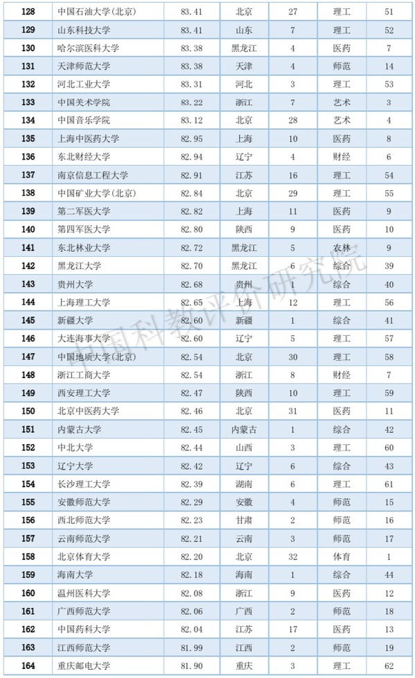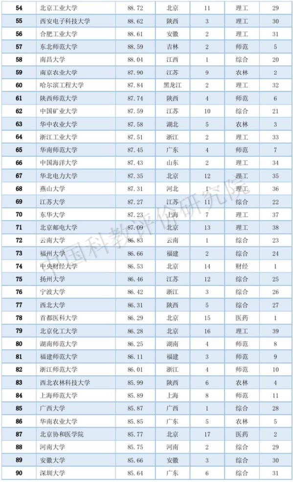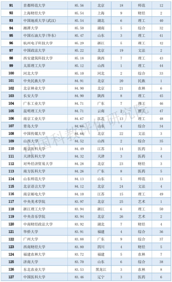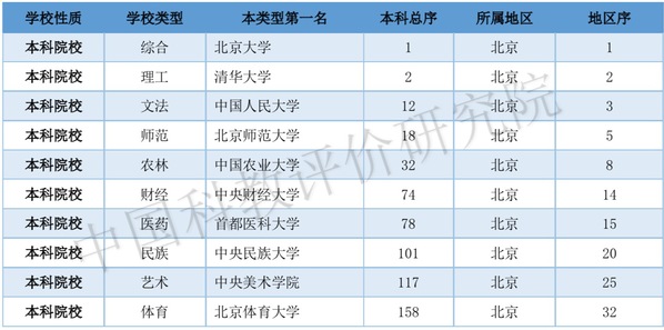各类型排名第一的高校如表2所示,惊人地发现所有类型排名第一的高校都在北京,可见北京集中了我国最顶尖的主要教育资源。