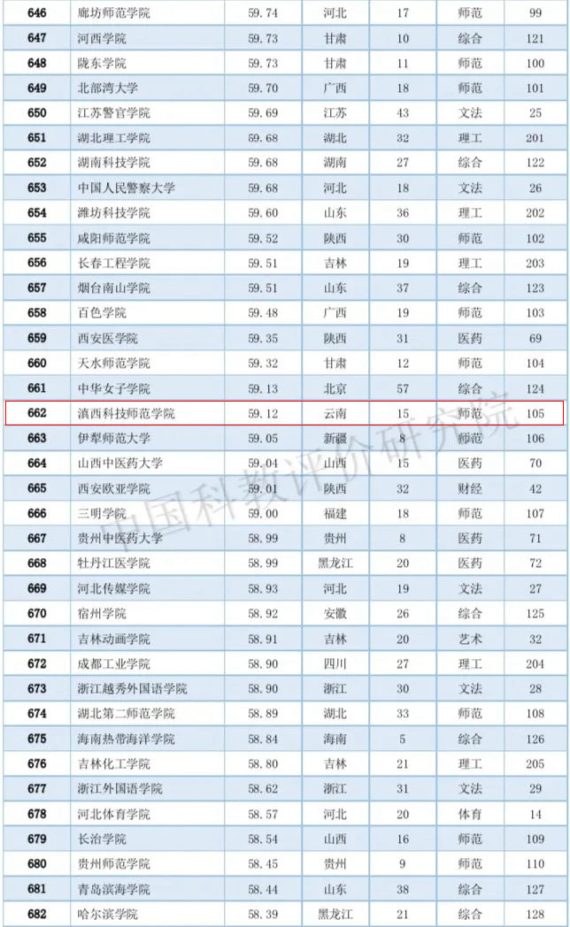 4月23日,金平果连续第十七次隆重推出《中国大学及学科专业评价报告(2020-2021)》,发布中国大学及高职高专院校各类排行榜单共计1400多个。我校全国排名662位,云南省排名15位,师范类学校排名105位。