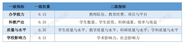 本次中国本科院校竞争力评价指标体系设一级指标4个,二级指标13个,三级指标约30个。一级指标包括办学能力、科教产出、质量与水平、学校影响力4个方面,二级指标包括教师队伍、教育经费、项目与平台等13个方面(见表1),三级指标包括杰出人才、研究生导师数、专任教师数等约30个方面。