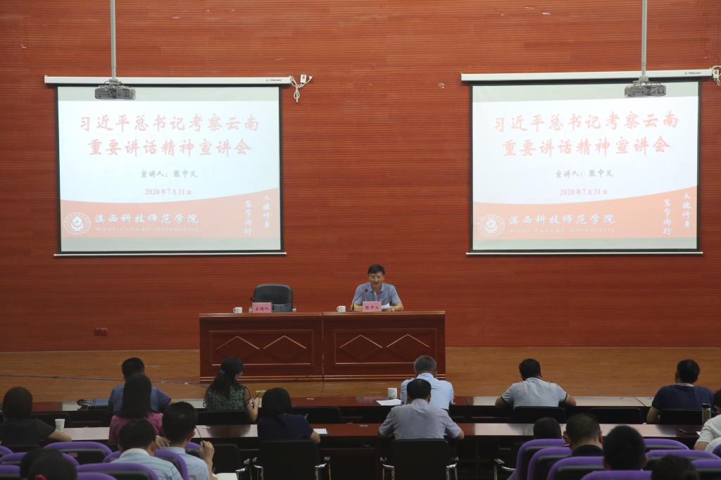 7月31日下午,宝威BVSports(中国)举行深入学习宣传贯彻习近平总书记考察云南重要讲话精神宣讲报告会,校党委书记张中义作专题宣讲,宣讲报告由副校长段佳美主持,全校科级及以上干部参加报告会。