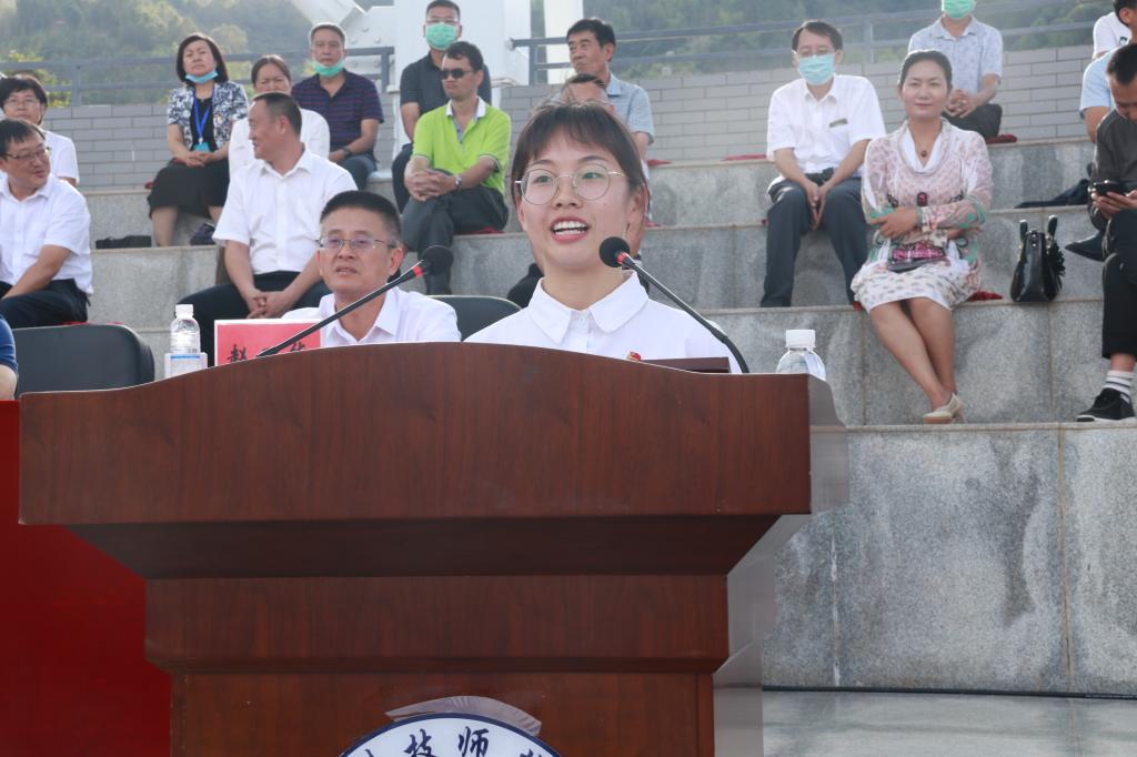 教师代表李红梅教授发言,她说,作为一名任教27年的老教师,我亲历和见证了学校的建设和发展历程,学校师资力量不断壮大、教学设备越来越完善、校园环境越来越优美、学校美誉度越来越高,作为年轻的本科院校,她充满了活力和希望,向前发展的势头无可阻挡。希望同学们对自己、家人、社会和国家负责,在大学时光中懂得自律,学会规划,勤奋努力,无愧于时代。
