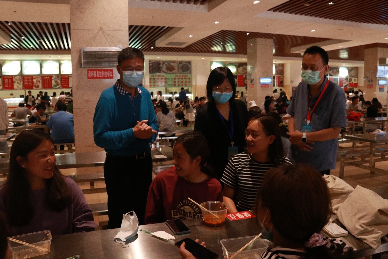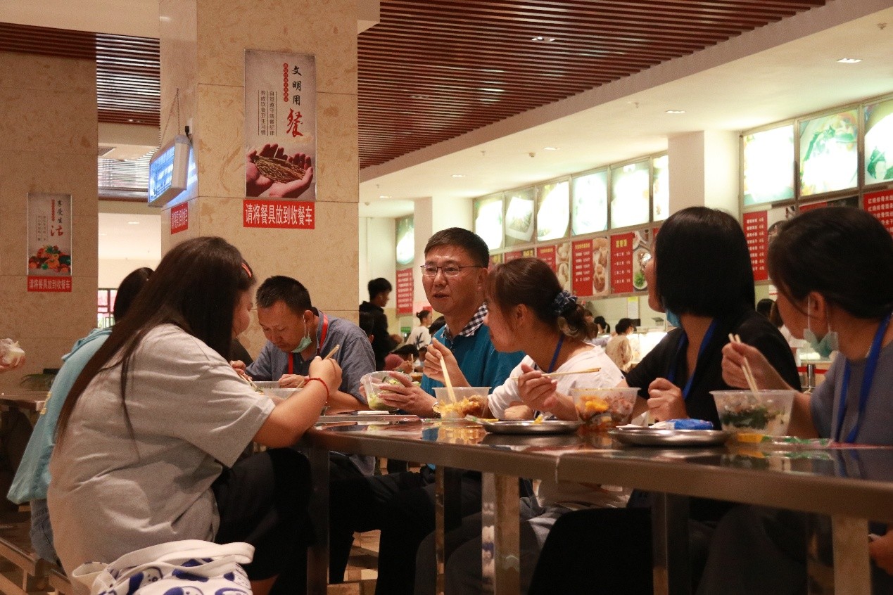 为深入贯彻落实习近平总书记关于厉行节约、反对餐饮浪费的重要指示精神,近日,王德强校长深入学生食堂调研,与前来就餐的同学们就食堂菜品、价格等进行亲切交流,并一同在食堂就餐。