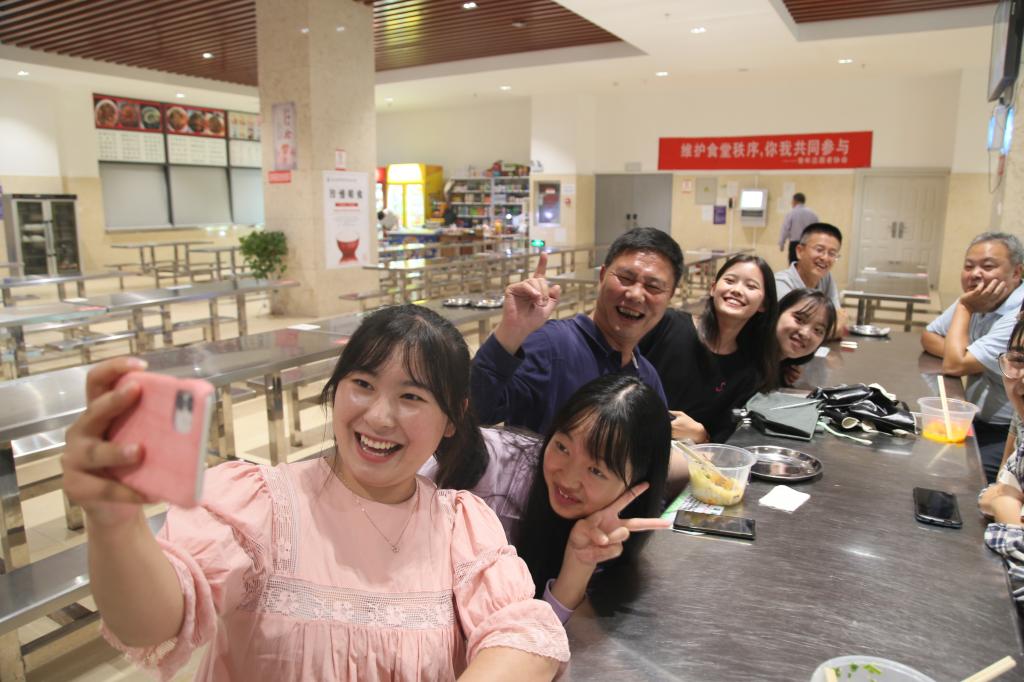 参加主题班会前,王德强到食堂和同学们一起用餐,在亲切愉快的氛围中,与同学们共叙家常,共话美好!