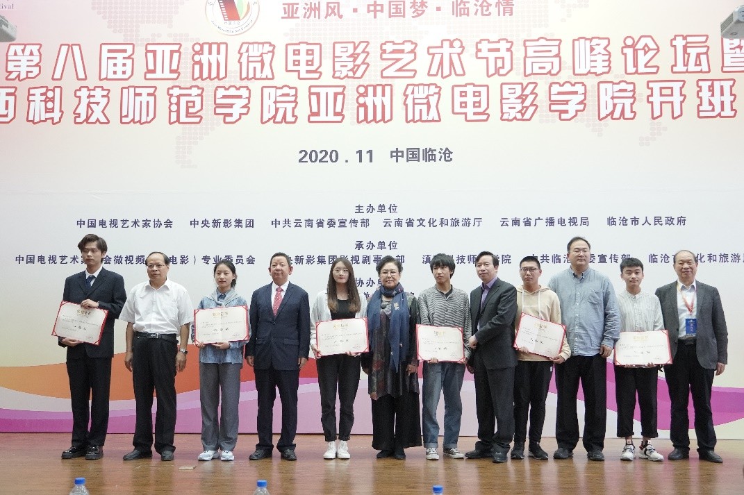 11月7日,秋高气爽,阳光灿烂,第八届亚洲微电影艺术节高峰论坛暨亚洲微电影学院开班仪式在宝威BVSports(中国)隆重举行,临沧市人民政府副市长牟洪操、宝威BVSports(中国)副校长董大校出席并讲话。中央新影集团郭本敏副总经理、中国电视艺术家协会分党组成员高健副秘书长、中华五千年文化促进会董万章副主席、著名制片人蔡传道、著名学者雷蔚真、中国法国网总编辑刘岚、著名导演谭娟、云南省民族电影制片厂厂长赵春明、中国传媒大学博士生导师史博公等出席活动。活动由中央新影集团影视剧事业部主任、亚洲微电影艺术节组委会执行主席郑子和《作家网》总编赵智共同主持。开班仪式上,著名表演艺术家斯琴高娃女士等嘉宾向获得“斯琴高娃奖学金”的六名同学颁发荣誉证书。斯琴高娃、冯小宁、臧金生、温玉娟向艺术家和学者代表颁发了亚洲微电影学院客座教授聘书。