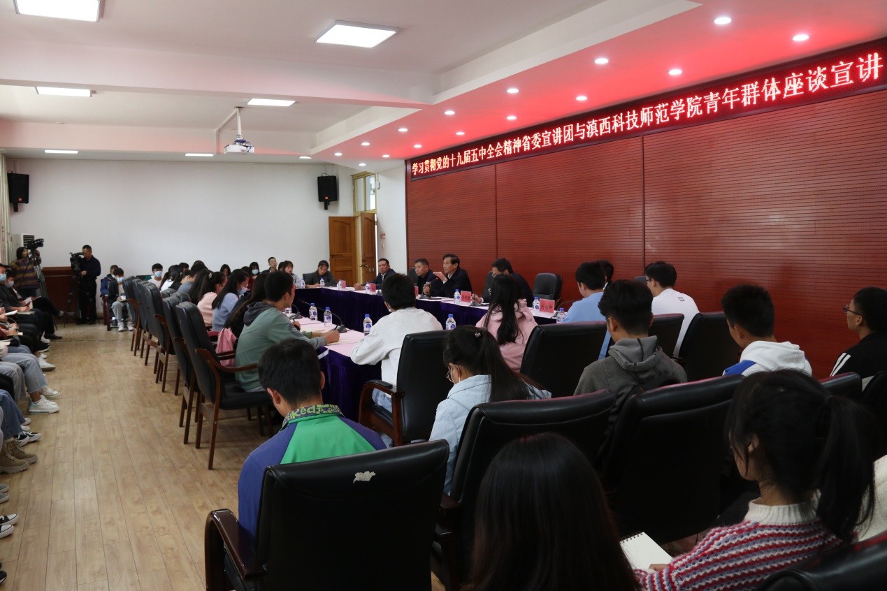 11月26日下午,我校举行党的十九届五中全会精神宣讲座谈会。省委宣讲团成员、省委党校(云南行政学院)教授欧黎明到我校与青年师生进行宣讲座谈。校党委副书记李国钰主持会议,临沧市委宣传部、市委党校有关领导出席宣讲座谈会。